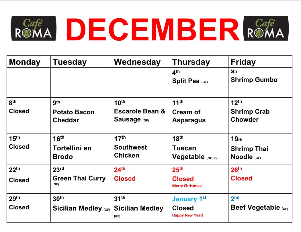 Cafe Roma December Soup Calendar